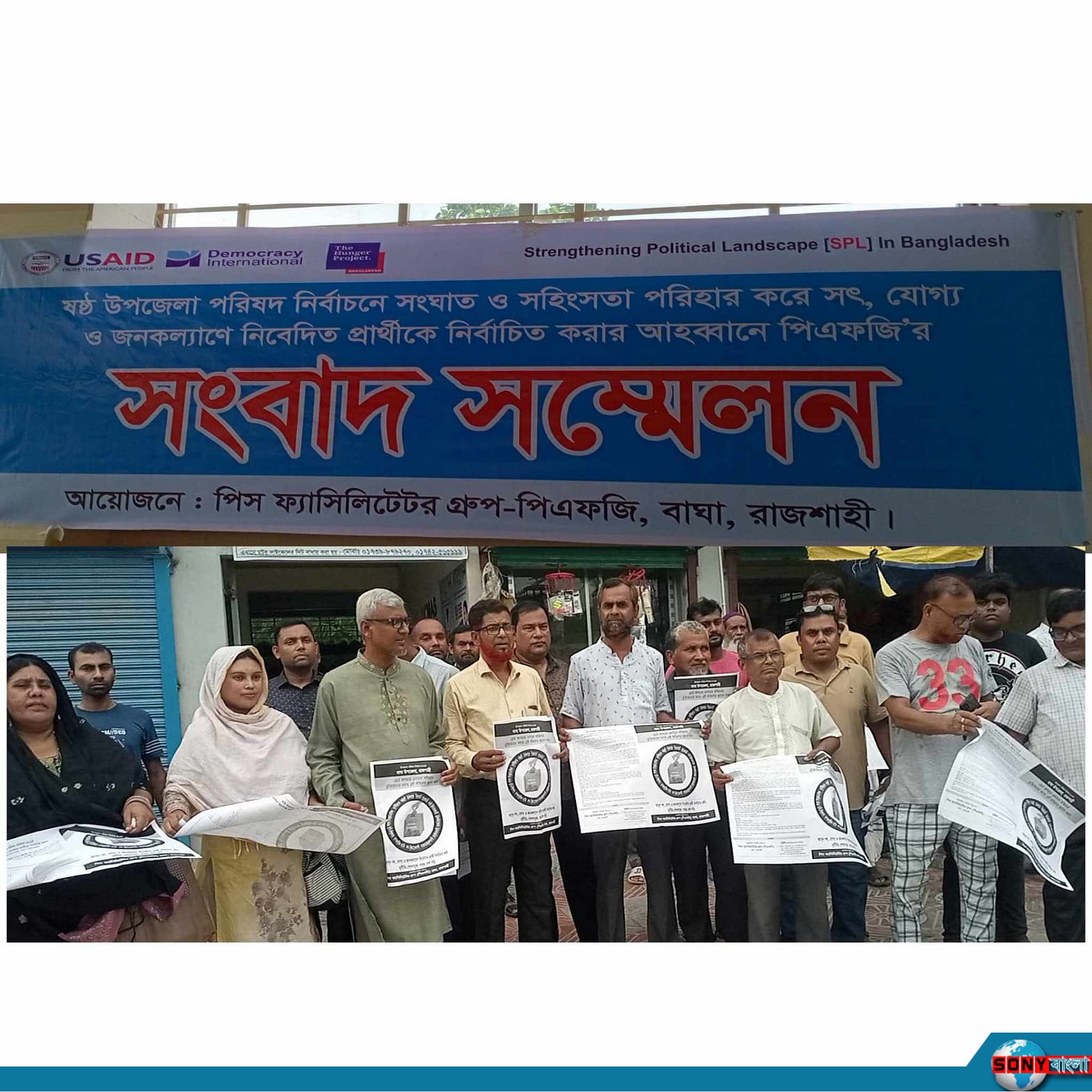 তাই অপনার প্রতি আহ্বান, নাগরিক দায়িত্ববোধ থেকে সুচিন্তিতভাবে ভোটাধিকার প্রয়োগের মধ্য দিয়ে সুযোগ্য নেতৃত্বের হাতে অপনার উপজেলা পরিচালনার দায়িত্ব অর্পণ করুন। আহ্বানেপিস ফ্যাসিলিটেটর গ্রুপ (পিএফজি)।এসম আরও উপস্থিত ছিলেন, পিএফজির বাঘা শাখার সদস্য, আবু বক্কর সিদ্দিক, রানু আক্তার, এহসানুল হক, স্থানীয় বাঘা প্রেস ক্লাবের সভাপতি আব্দুল লতিফ মিয়া, সাধারণ সম্পাদক নুরুজ্জামান, বাঘা মডেল প্রেস ক্লাবের সভাপতি শাহানুর আলম বাবু, সম্পাদক হাবিল উদ্দিন, সাংবাদিক গোলাম তোফাজ্জল কবির মিলন, লালন উদ্দিন, আব্দুল হামিদ মিয়া, সুব্রত কুমারসহ উপস্থিত ছিলেন, পিএফজি বাঘা শাখার সদস্যবৃন্দ।