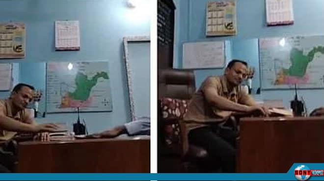 ভিডিওচিত্রে দেখা গেছে, ওসি মাহবুব আলম তার চেয়ারে বসে আছেন। সামনে বসে থাকা এক ব্যক্তি বলছেন, ‘মাহবুব ভাই, ভাই উঠব ভাই। একটু কথা বলে যাই।’ ওসি তার দিকে মনোযোগ দিয়ে বলেন, ‘হুম’। সামনে বসে থাকা যুবক বলেন, ‘ভাই, একটা ছোট খাম দেন।’ এ সময় ওই ব্যক্তি বলেন, ‘মাহবুব ভাই, আপনি আমাকে চিনেন, জানেন, বোঝেন। আমি বিপদে পড়সি বলেই আপনার কাছে আসছি ভাই। আমি বিপদেই পড়ে এসেছি। দেন একটা খাম দেন।