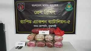 স্টাফ রিপোর্টার: রাজশাহীর পুঠিয়া উপজেলায় র্যাব-৫ এর অভিযানে এক অভিনব চিত্র ফুটে উঠেছে—মাদক পরিবহনের সময় ধরা পড়েছেন এক কর্মরত পুলিশ কর্মকর্তা।