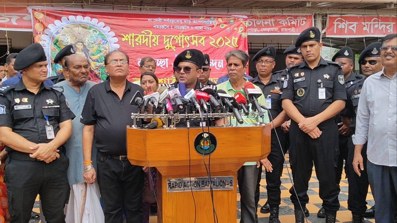 তিনি বলেন, ‘দুর্গাপূজার উৎসব কিন্তু শুরু হয় রাজশাহীর তাহেরপুরে। তাই রাজশাহীর দুর্গাপূজায় বিশেষ তাৎপর্য থাকে। এখানে আরও উৎসবমুখর পরিবেশে পূজা পালিত হয়। আমরা সব ধরনের নিরাপত্তা নিশ্চিত করব। কোথাও কোনো বিশৃঙ্খলার খবর পেলে তাৎক্ষণিক ব্যবস্থা নেওয়া হবে।’