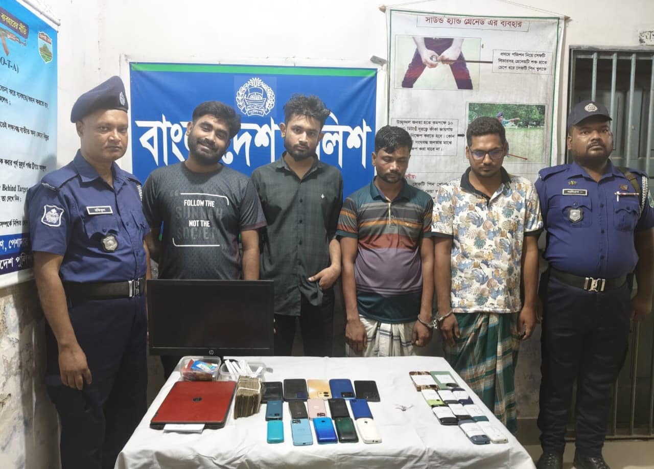 গ্রেফতারকৃতরা হলেন—মোঃ জুবায়ের হাসান শিশির (২১), মোঃ জাহিদ হাসান সিজান (১৯), মোঃ শরিফুল ইসলাম সিজান (৩৪) ও মোঃ রতন আলী (২৫)।
