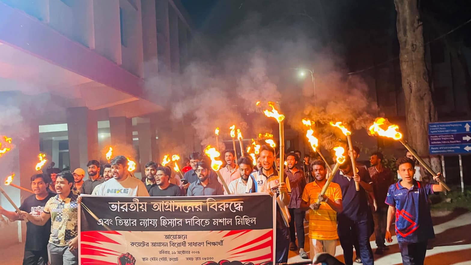 স্টাফ রিপোর্টার: রাজশাহী প্রকৌশল ও প্রযুক্তি বিশ্ববিদ্যালয়ে (রুয়েট) তিস্তা নদীর ন্যায্য পানিবণ্টনের দাবি, ভারতীয় আগ্রাসনের প্রতিবাদ এবং উত্তরাঞ্চলের মানুষের প্রতি বৈষম্যের অবসানের প্রত্যাশায় এক শান্তিপূর্ণ মশাল মিছিল অনুষ্ঠিত হয়েছে।