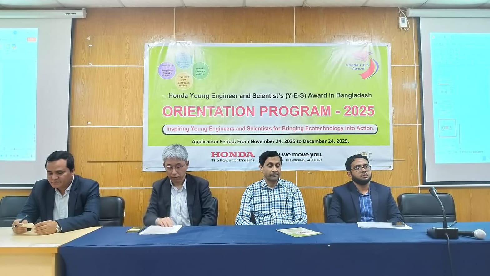 অনুষ্ঠানে জানানো হয়, রুয়েট সহ বুয়েট, কুয়েট ও চুয়েটের শিক্ষার্থীরা এই এ্যাওয়ার্ড প্রতিযোগীতায় অংশগ্রহণের জন্য আবেদন করতে পারবেন। আবেদনকারীদের মধ্য থেকে মেধা ও যোগ্যতার ভিত্তিতে বিশ্ববিদ্যালয় প্রতি ৩০ জন করে মোট ১২০ জন শিক্ষার্থীকে বাছাই করা হবে। এই ৩০ জনের মধ্য থেকে শীর্ষ ৪ জনকে ৩ হাজার ডলার করে পুরস্কার (প্রাইজ মানি) প্রদান করা হবে। প্রতিযোগিতায় অংশগ্রহণের জন্য চলতি বছরের ২৪ নভেম্বর থেকে ২৪ ডিসেম্বর পর্যন্ত আবেদন করা যাবে। জাপানের হোন্ডা ফাউন্ডেশন সহ বাংলাদেশ হোন্ডা প্রাইভেট লি. ও জাপান ইন্টারন্যাশনাল কো-অপারেশন সেন্টার যৌথভাবে এই এ্যাওয়ার্ড প্রতিযোগিতার আয়োজন করেছে। বিস্তারিত তথ্যের জন্য y-e-s.bangladesh@jice.org এই ইমেইলে যোগাযোগ করতে বলা হয়েছে।