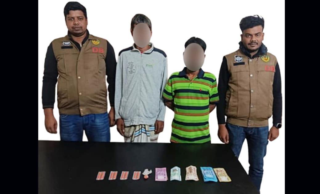 খবর পেয়ে ডিবি পুলিশের দল দ্রুত ঘটনাস্থলে পৌঁছালে পুলিশের উপস্থিতি টের পেয়ে আসামিরা পালানোর চেষ্টা করলে ডিবির সদস্যরা দুইজনকে আটক করতে সক্ষম হন। পরবর্তীতে দেহ তল্লাশিতে আলমের কাছ থেকে ৩৫ পিস ইয়াবা ট্যাবলেট ও মাদক বিক্রির নগদ ৩ হাজার ১৭০ টাকা এবং নাসিরের কাছ থেকে ৪০ পিস ট্যাপেন্টাডল ট্যাবলেট উদ্ধার করা হয়।