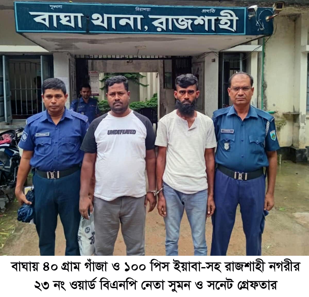 স্টাফ রিপোর্টার: রাজশাহীতে বিপুল পরিমান গাঁজা ও ইয়াবা-সহ মহানগর বিএনপি নেতা সুমন-সহ দুইজনকে গ্রেফতার করেছে পুলিশ। মঙ্গলবার (৮ জুলাই) দিনগত রাতে বাঘা পৌর এলাকা থেকে তাদের গ্রেফতার করা হয়। গ্রেফতার...